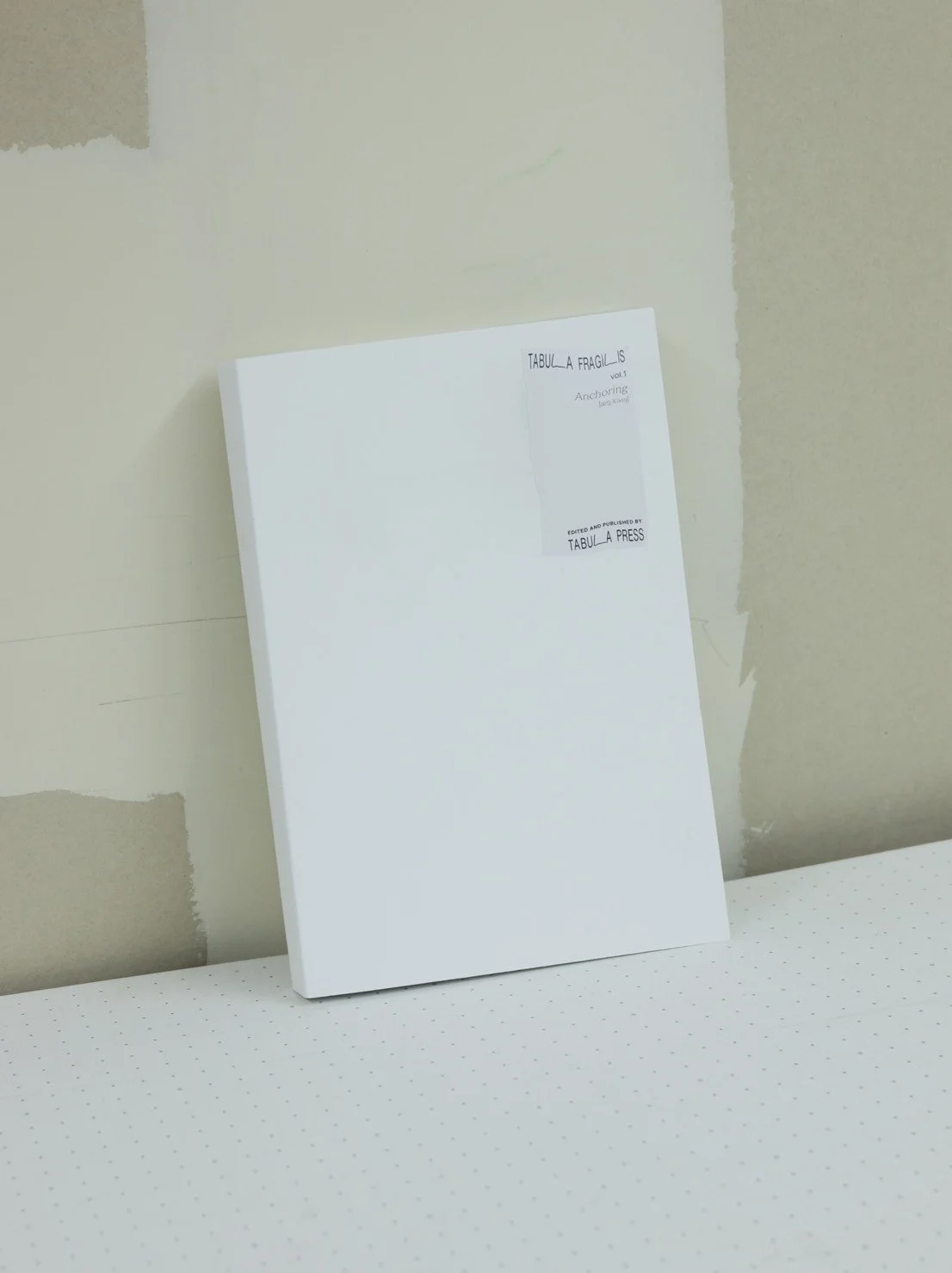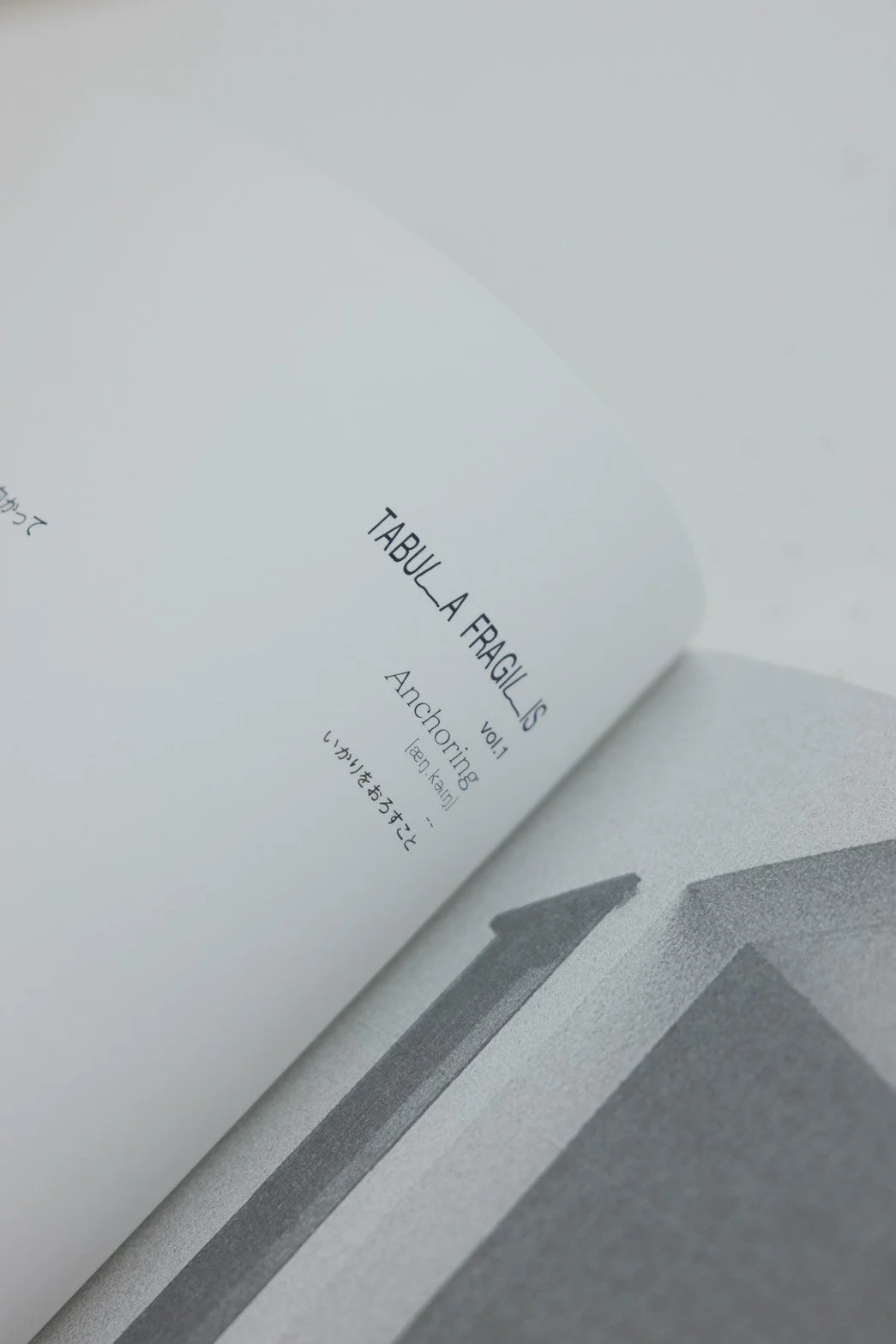 2024年11月に発売されたTabula Pressによるマガジン、Tabula Fragilis vol.01 の普及版。テーマは「Anchoring」。曽根と成定、北垣とそれぞれが選定したゲストとともに行われた展示「Living Room by Tabula Press 生きることの範疇」の記録と編集を通して、不安定な状態そのままにどこかへと係留するための、態度や実践を模索します。